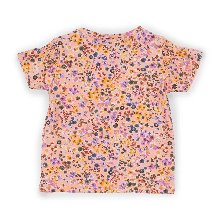 T-shirt en jersey à motifs de fleurs Col rond Manches courtes froncées à l’épaule. Couleur corail