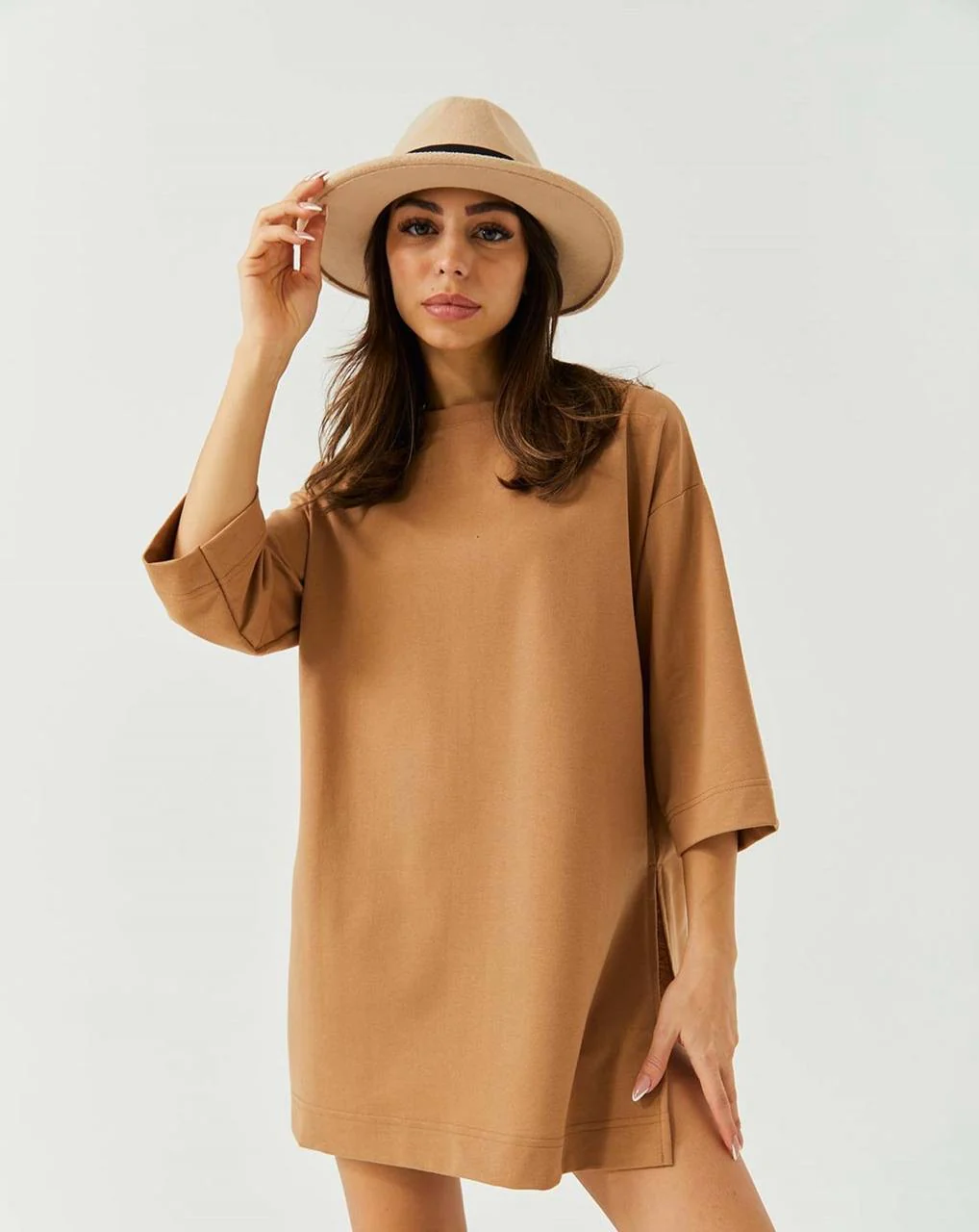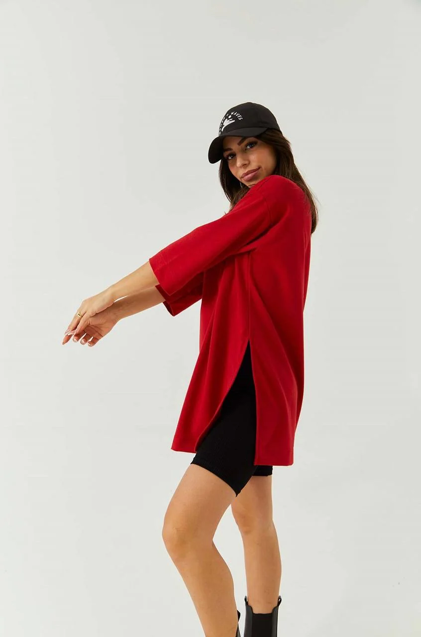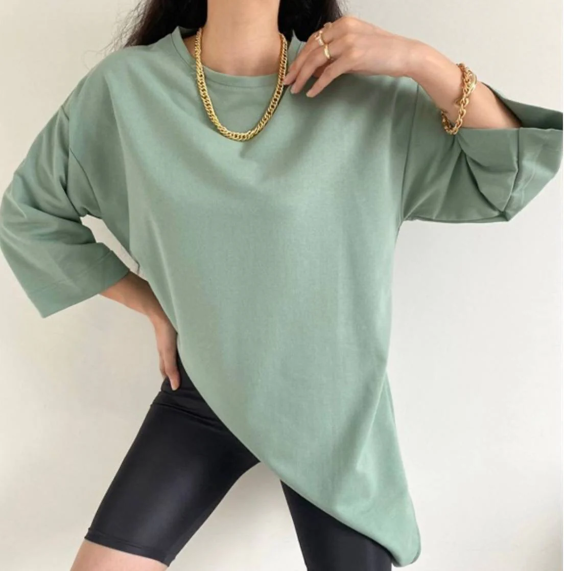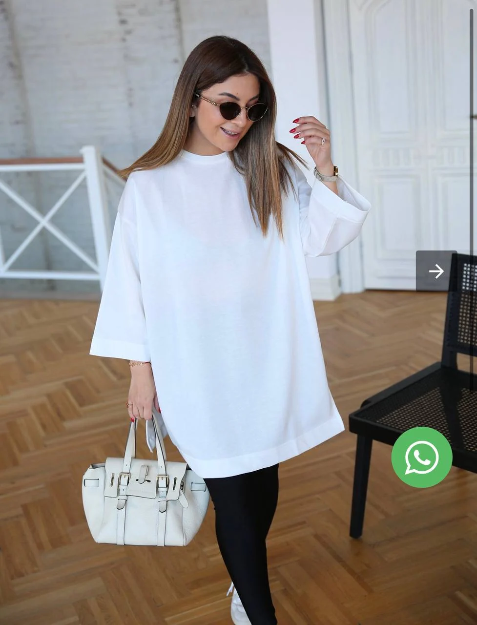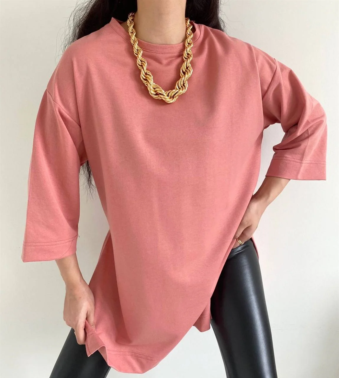 Tshirt BASIC Composition : 100% Coton (Totalement opaque) Fabriqué en Turquie manches 3/4 2 fentes sur le coté Le modèle mesure 1m68