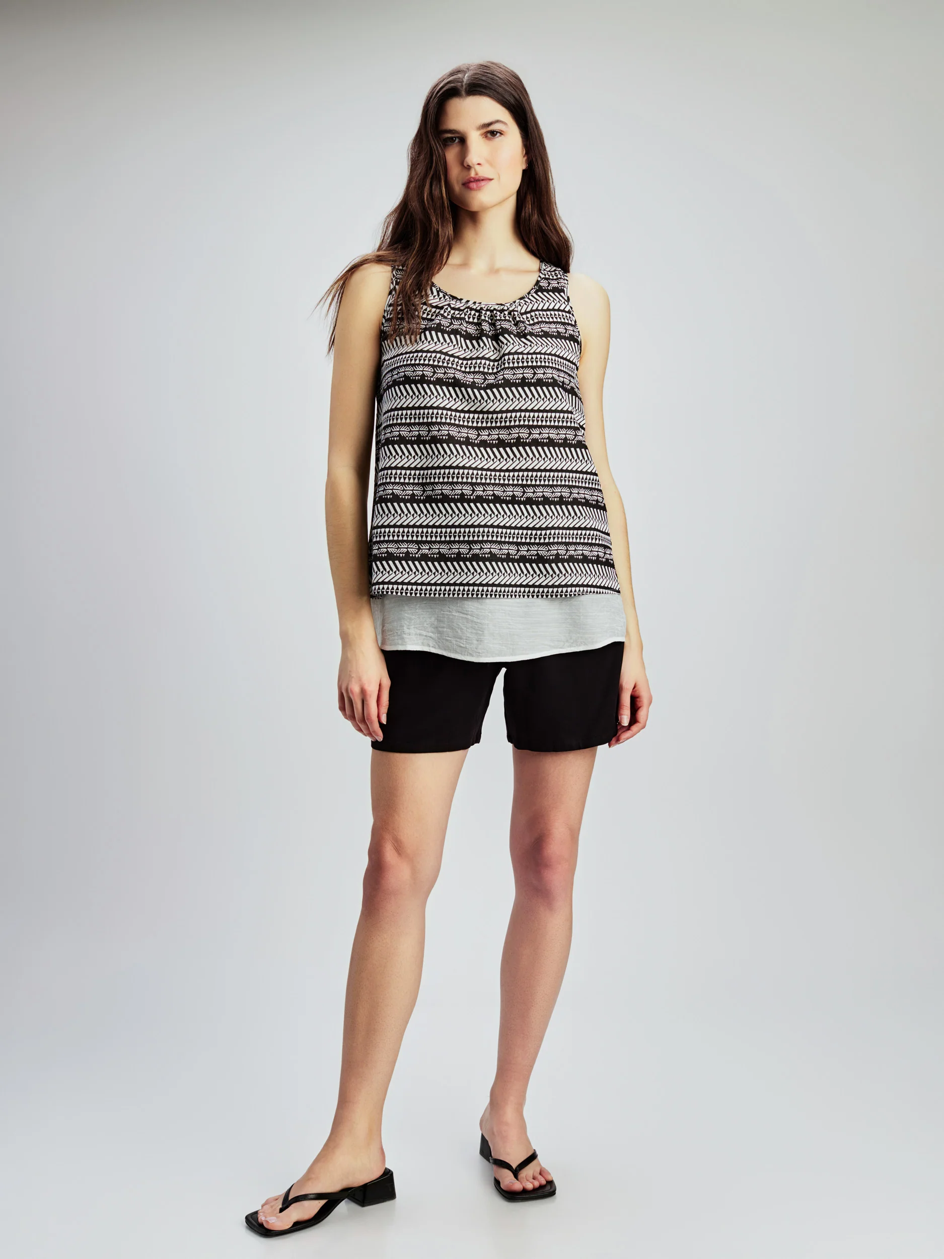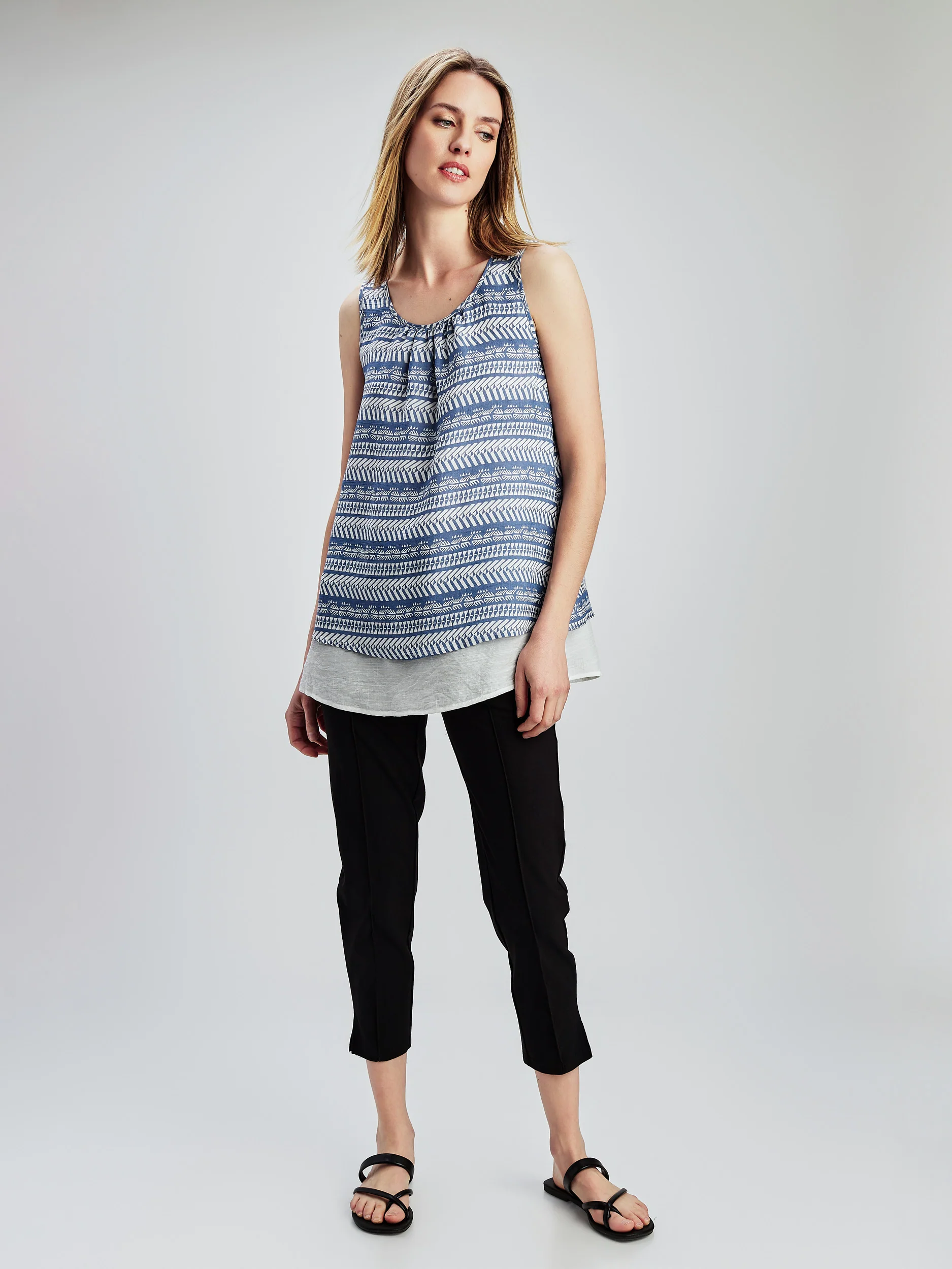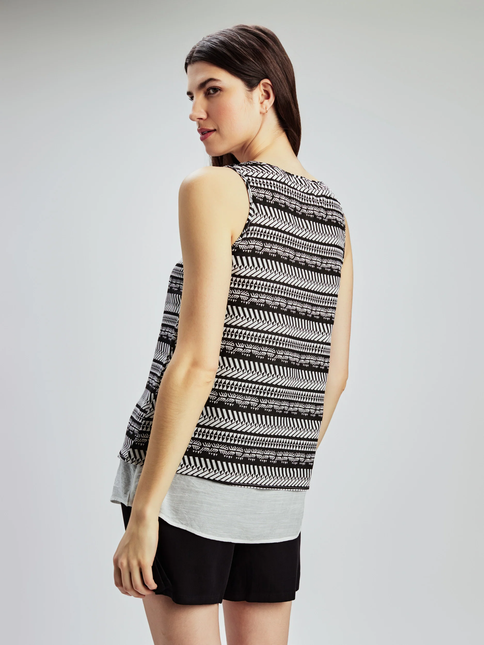 Cette tunique imprimée sans manches est fabriquée dans un tissu léger pour un confort optimal.