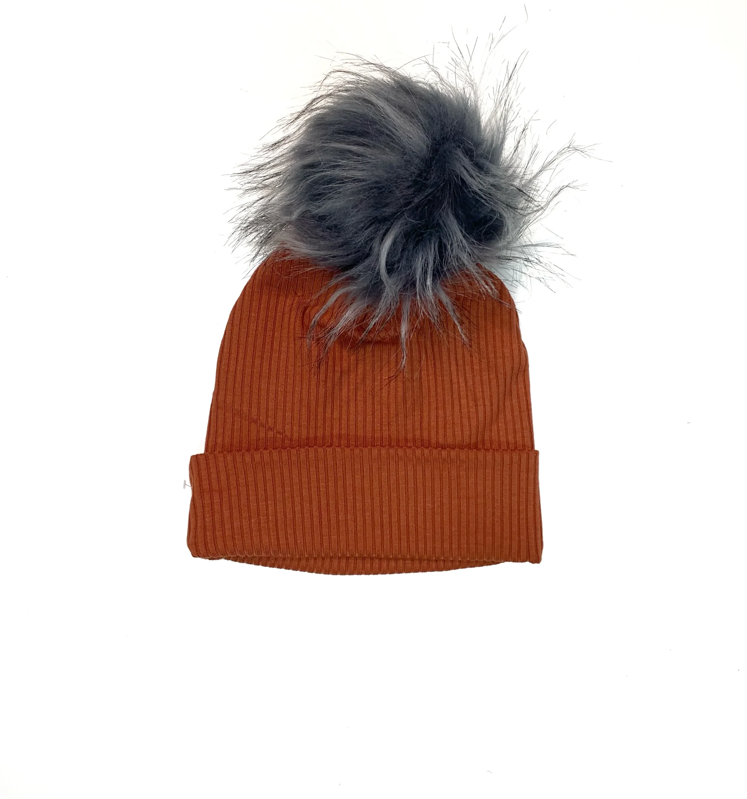 Tuque Printemps/automne non doublée en rayonne de bambou. Tissu vraiment extensible. Pompon de fourrure synthétique