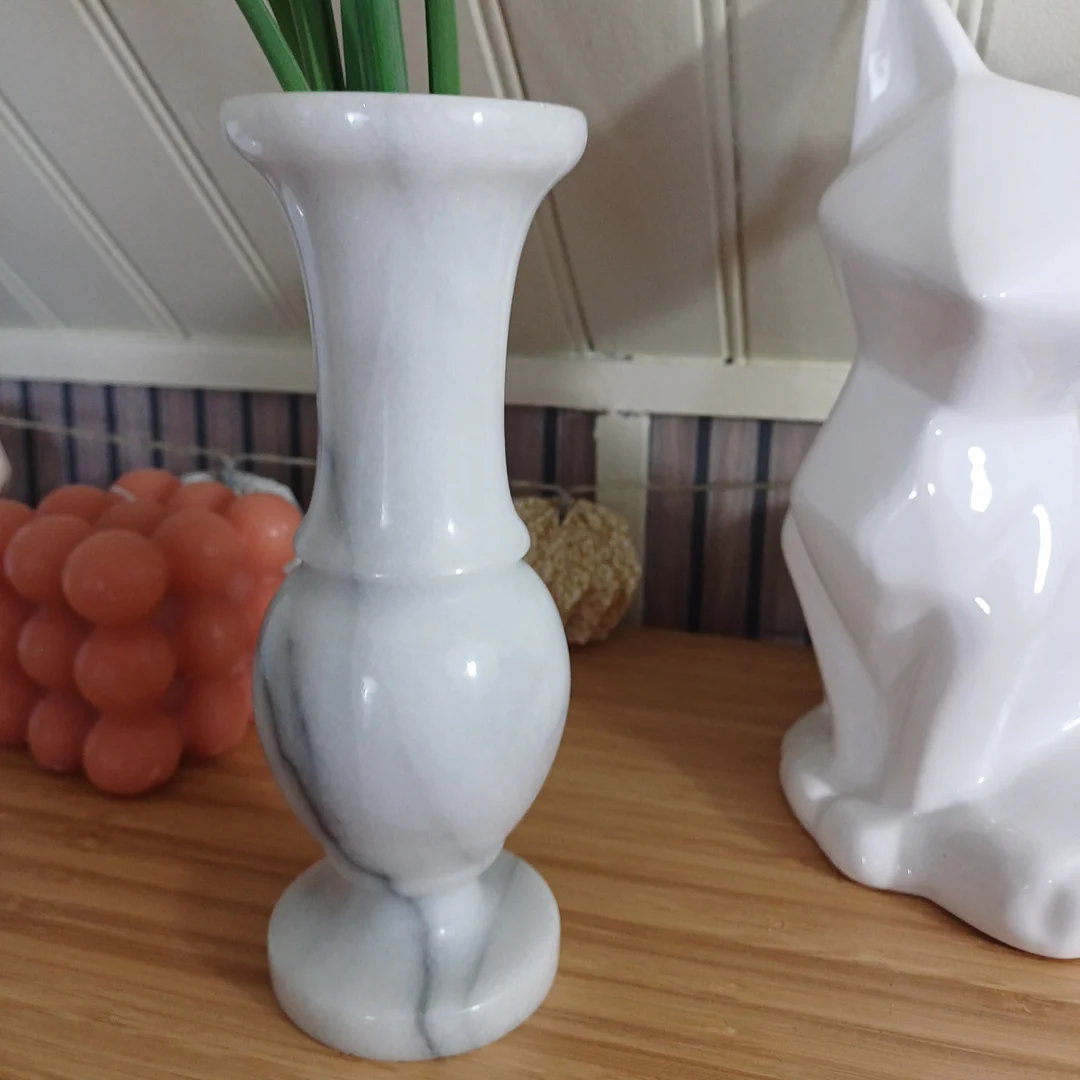 Vase en marbre blanc. Poid: 1086 g Dimensions: Hauteur 20,5 cm Largeur environ 7 cm