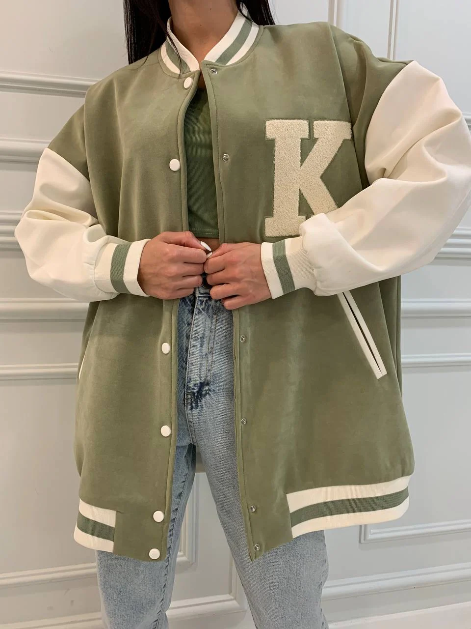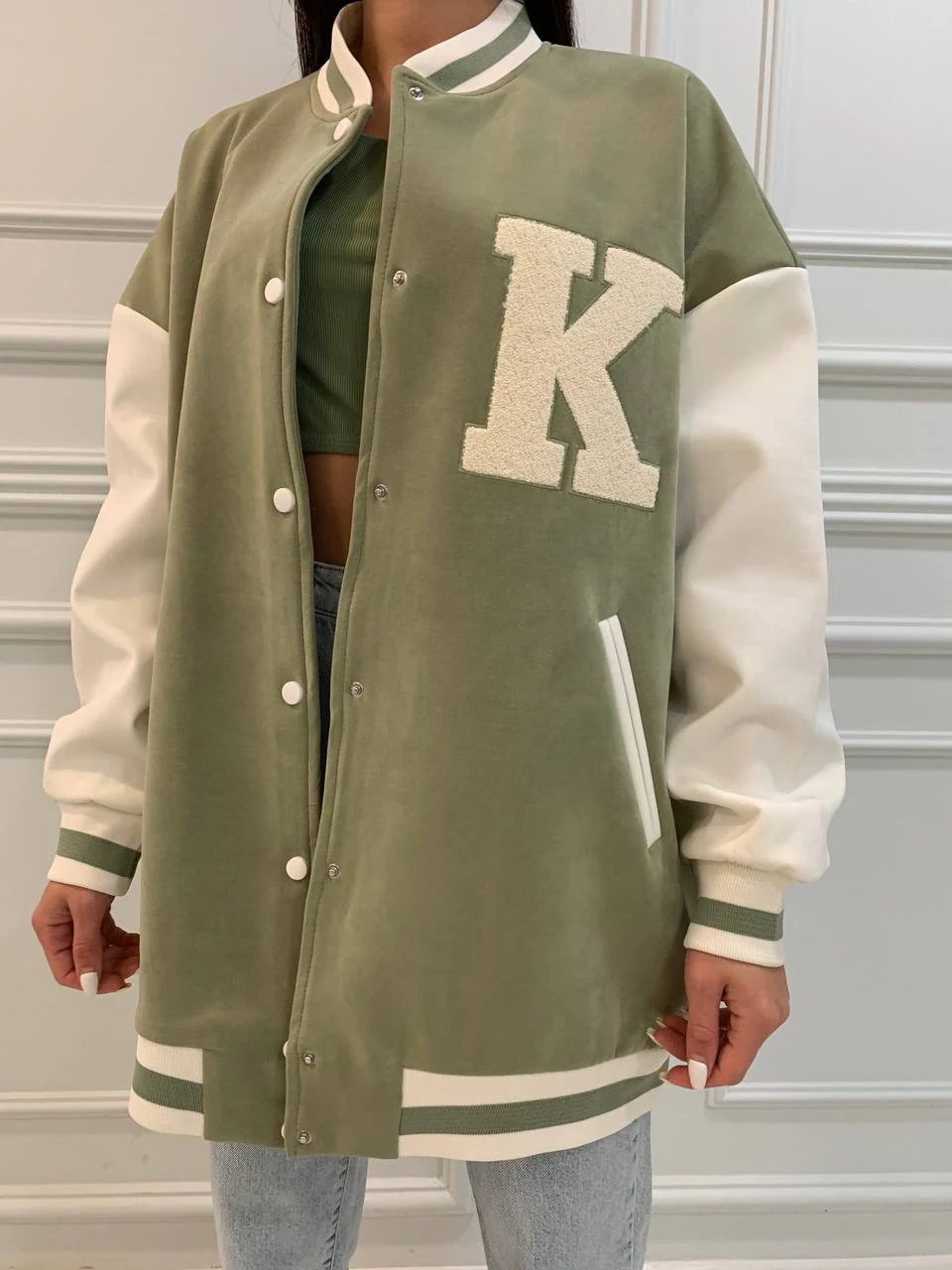 VESTE BI-COULEUR K COULEUR VERT EAU – VIEUX ROSE